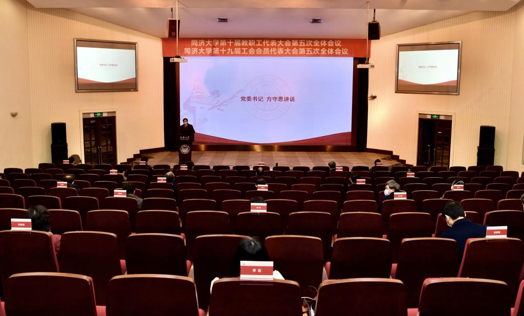 大会表决通过了《同济大学第十届教职工代表大会、第十九届工会会员代表大会第五次全体会议决议》。会议号召,全校教职工要在学校党委坚强领导下,高举中国特色社会主义伟大旗帜,以习近平新时代中国特色社会主义思想为指导,始终保持奋发有为、开拓进取的良好精神状态;教代会要进一步完善制度建设,扎实推进二级单位民主管理,助力学校各项改革发展;工会要发挥好党和群众的桥梁纽带作用,弘扬立德树人、劳模精神、匠心精神,打造“强信心、聚民心、暖人心”工程,不断提升教职工获得感和幸福感;全校上下要按照学校既定战略目标和工作计划,遵循规律、抢抓机遇,只争朝夕、追求卓越,全面深化教育综合改革,加快推动学校治理体系和治理能力现代化,加快推进中国特色世界一流大学建设,为培养德智体美劳全面发展的社会主义建设者和接班人不懈奋斗。