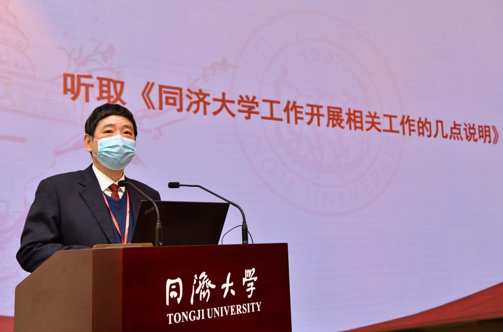 大会当天上午9时在雄壮的国歌声中开幕。会上,校长陈杰作《同济大学2019年学校工作报告》。过去一年,学校以习近平新时代中国特色社会主义思想为指导,深入学习贯彻十九大和十九届二中、三中、四中全会精神,牢固树立“四个意识”,坚定“四个自信”,全面贯彻党的教育方针,坚持立德树人,坚持社会主义办学方向,扎实推动“不忘初心、牢记使命”主题教育取得实效。学校遵循高校办学基本规律,按照同济大学第十一次党代会制定的发展方略和建设目标,加快推进学校综合改革和内涵式发展。报告中,陈杰汇报了2019年亮点工作,包括“不忘初心、牢记使命”主题教育扎实推进、人才培养综合改革稳步推进、高层次人才队伍数量快速增长、学科国际影响力稳步提升、重大科技创新平台建设实现突破等,以及2019年学校党的建设、学科建设、人才培养、基础研究、人事人才体系建设、对外合作交流、同济特色大学文化培育、一流管理保障体系建设等各项工作完成情况。