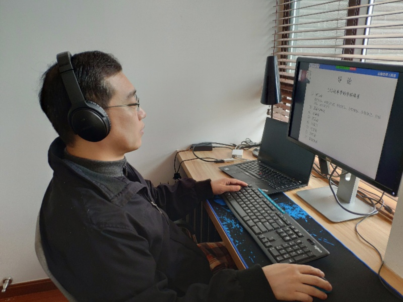 “我们虽然独处在安静的房间面对着屏幕上课,但是心里要时刻想着眼前有50多位同学,在缺少神情互动的条件下,我们能做的就是保持微笑、语气亲切、调整好节奏,把往届同学课堂上不容易理解的知识点多强调、多举例。”滕老师说:“我们会在课下作业中强调课前预习和课后复习的要求,加强课程团队教师间的教学情况互通,增加对同学听课意见的主动询问。如果同学在家中能获得在学校教室里一样的听课效果,我们做老师的就安心了,我想这也就是一个教师对国家疫情防控工作能做的最大支持吧”。