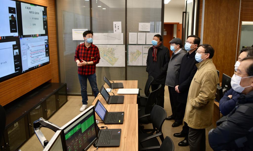 今天(3月2日)上午8时,我校全面启动本科生、研究生线上教学。当天上午,校党委书记方守恩,校长陈杰,副校长蒋昌俊、雷星晖来到学校信息化办公室,检查线上开课首日在线教学开展情况。方守恩、陈杰指出,学校各相关部门、各学院要全面掌握第一天线上教学的相关情况,及时交流分享教师线上教学的成功经验,探索在线教学方式创新,保障线上教学持续平稳进行,为学校智慧教室的建设积累有益经验。