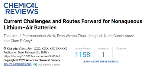 我校化学科学与工程学院刘韬教授团队长期致力于电池与电催化方面的研究,近期相关成果以“Current Challenges and Routes Forward for Nonaqueous Lithium–Air Batteries” 为题在国际顶级综述期刊Chemical Reviews(IF: 54)杂志上发表。该文还被选为ACS Editor's Choice作为亮点报道。