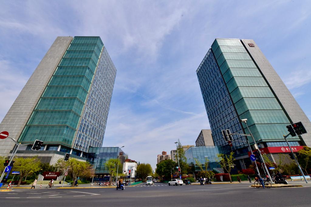 四月的同济园里依然静悄悄,一栋栋各式建筑沐浴在明媚的春光中,有着别样的沉静之美。