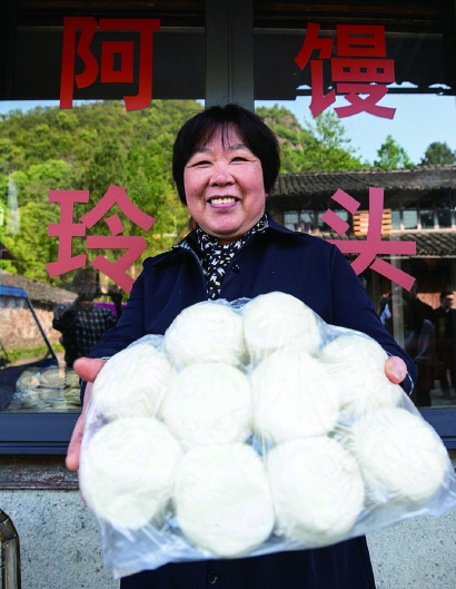 “以前在家里做馒头,后来搬到老街上。这里人气旺,生意比以前好多了。”午后的阳光散落在沙滩老街的石板路上,结束一天忙碌的阿玲一家闲聚着喝茶聊天。阿玲家的馒头松软有嚼劲,多时一天能卖出上万个。除了老面发酵的手艺外,水好也是“秘方”之一。