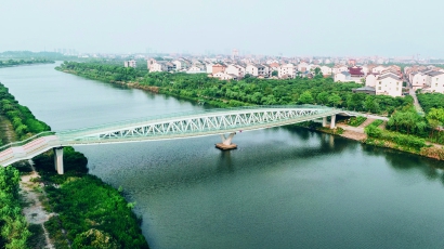 和澄江街道隔江相望的,是头陀镇辖区内的黄岩蜜橘精品园。“你看那座桥,像一片橘子树叶,把永宁江两岸的橘园连在一起。这座桥就是杨教授设计的。等到橘子红了,永宁江两岸火红一片,非常壮观。”澄江街道主任金建国说。