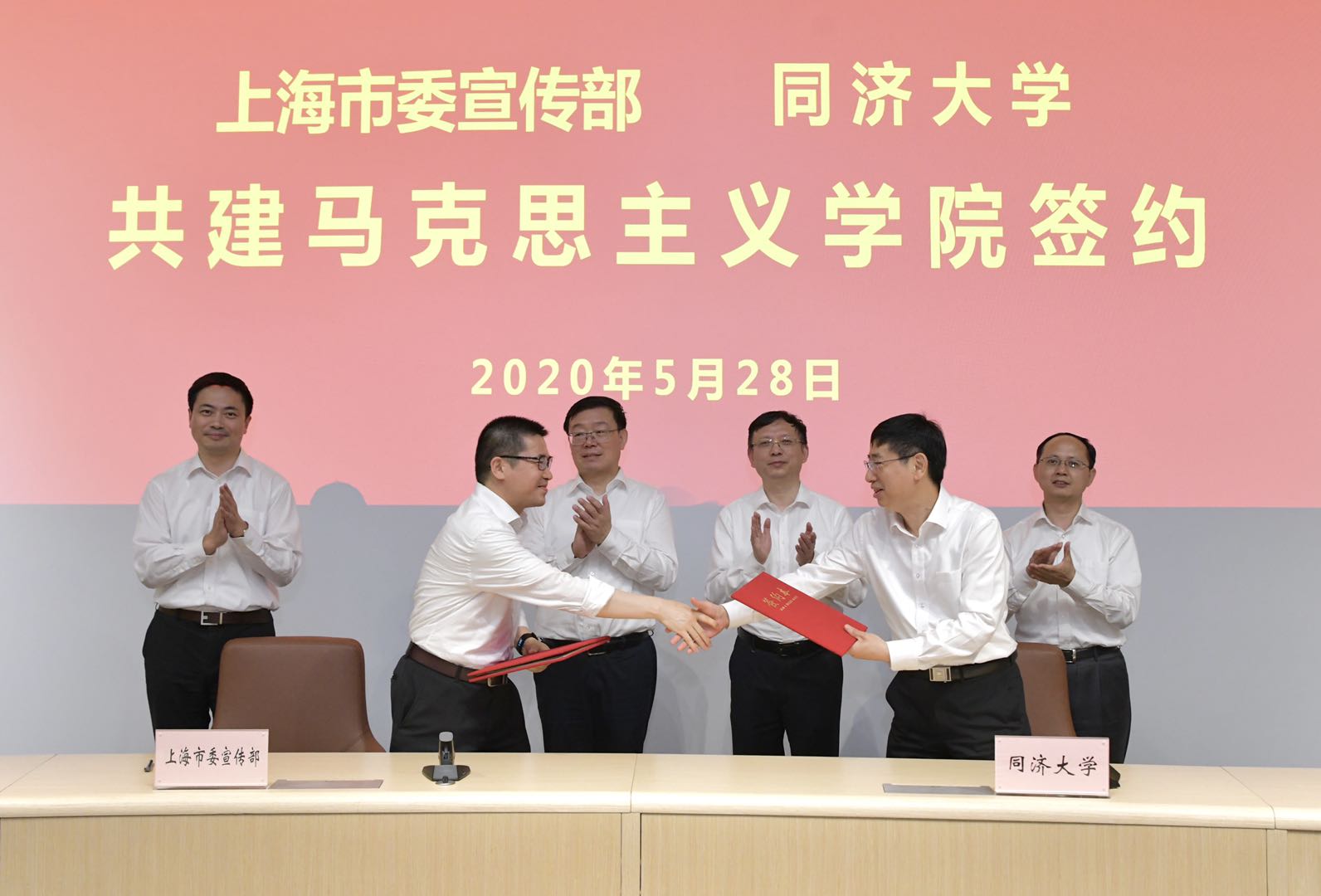 5月28日下午,上海市委宣传部在同济大学四平路校区举行部校共建马克思主义学院工作推进会,总结部校共建马克思主义学院成效,交流共建经验,研究部署共建下一步工作。会上,上海市委宣传部与同济大学签约共建马克思主义学院,部校共建同济大学马克思主义学院揭牌;市委宣传部分别与复旦大学、华东师范大学签约实施新一轮部校共建马克思主义学院。