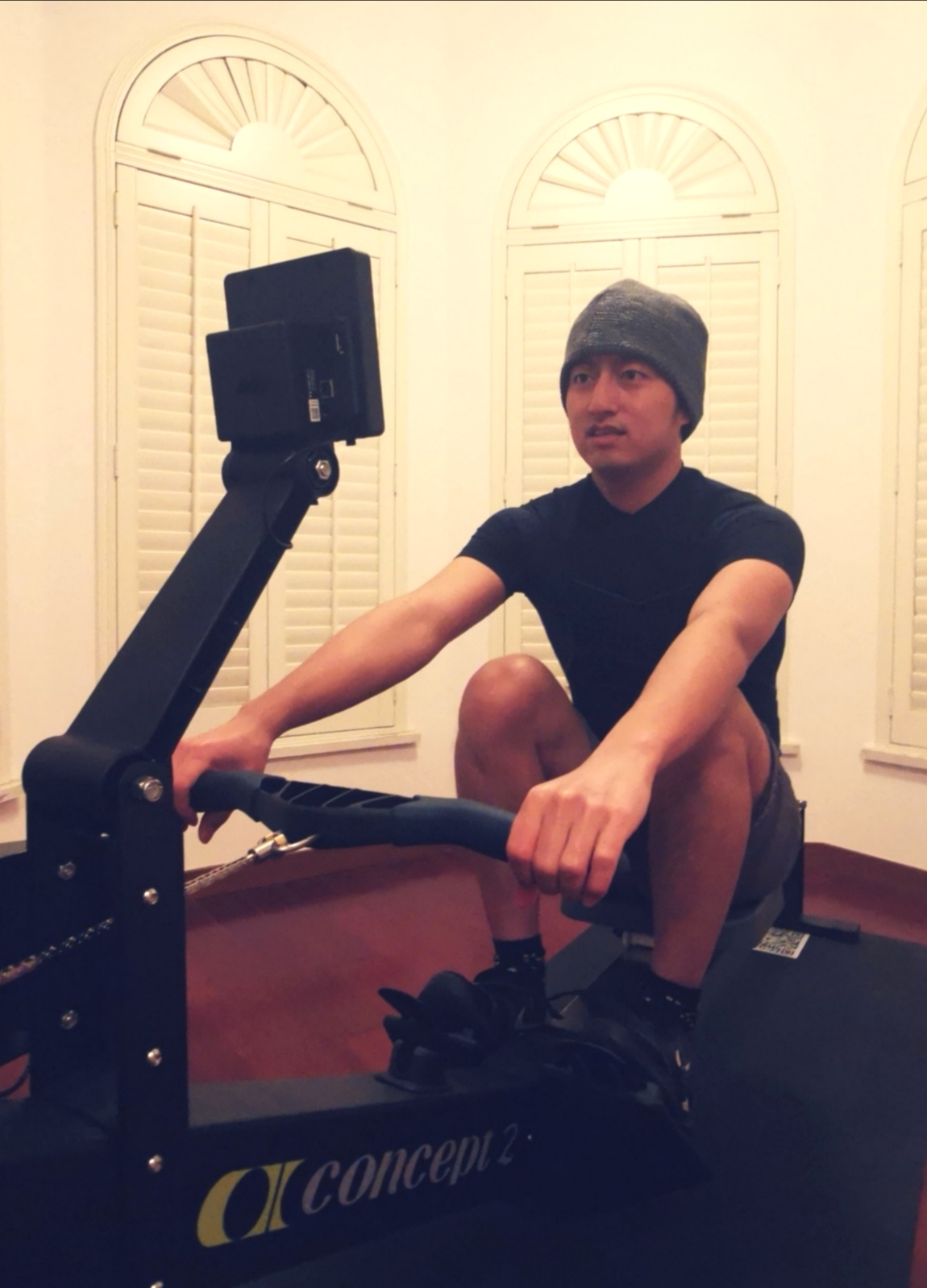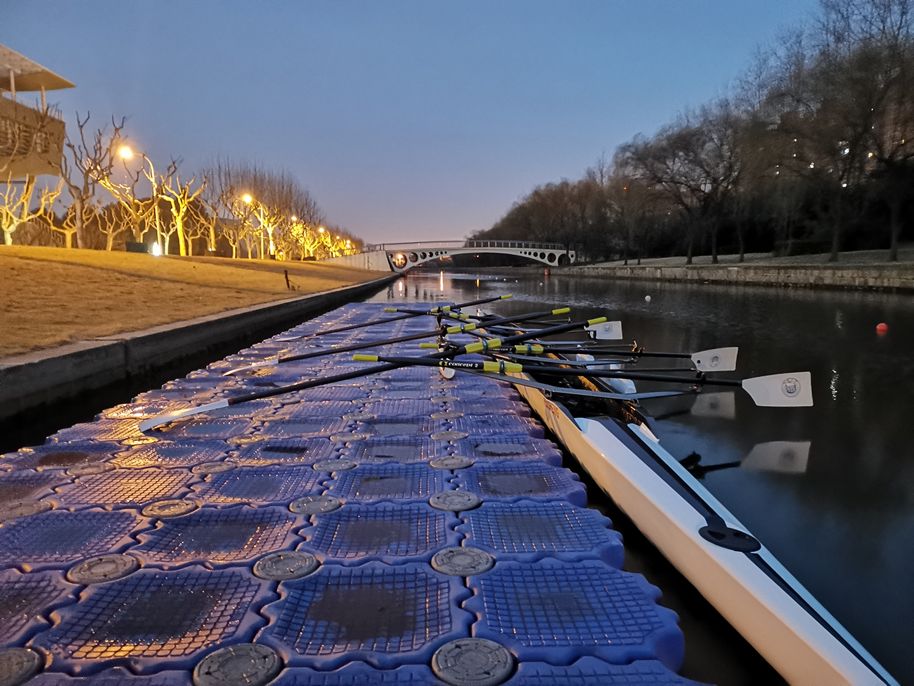 “最难熬的是暑训。”队员们都这么说。2019年8月8日早上5:30,迎着朝霞,张轩铭与队友们开始了暑期第一天集训。先是准备活动加水上20公里,虽然是一天当中温度较低的清晨,队员们依旧汗如雨下。不同以往的是这次的水上训练转移到了京杭大运河,航运河道上游轮、货船不时掀浪而过,赛艇犹如水中落叶难以掌控。头顶烈日划个来回,1000毫升饮用水是每名队员的必备品,汗水浸透训练服,整个人像刚从水里捞出来的一样。“防晒霜必须涂3层,不是怕晒黑,而是防晒伤,因为就算涂再多,一身身的汗一出也就冲淡了。”队员们深有体会地说。遇到室外气温过高,就改成室内长距离划,那也是半程马拉松起步。30分钟划船器三组或40分钟两组、短时间间隔多次500米冲刺……一天三段训练下来,水上里程达60公里,桨旋转、拉水,手掌早已水泡遍布。在接下来的大半个月的高强度集训里,队员们全然不顾身体的伤痛、烈日的炙烤,克服一个个困难,忘我地投入训练,从未轻言放弃。