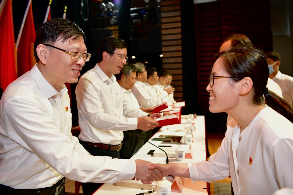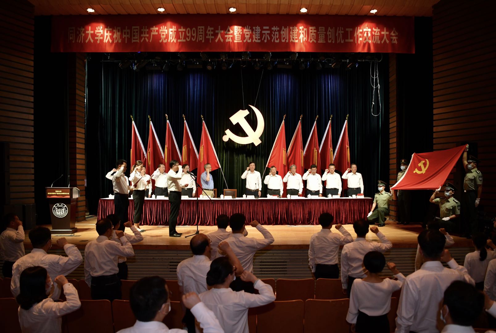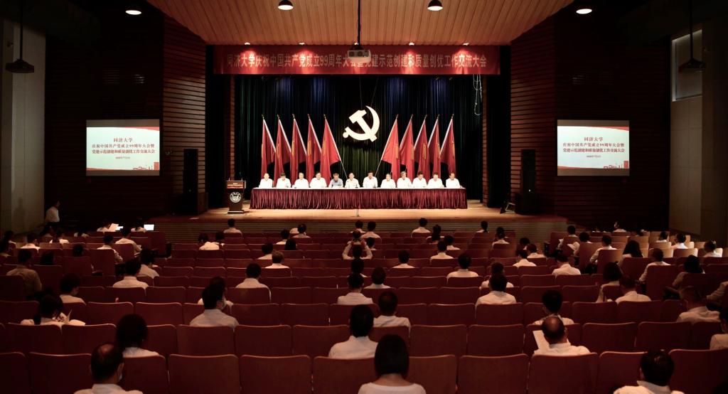 2020年7月1日下午,同济大学庆祝中国共产党成立99周年大会暨党建示范创建和质量创优工作交流大会在一·二九礼堂举行,校领导方守恩、陈杰、伍江、蒋昌俊、吴志强、徐建平、吕培明、吴广明、方平、冯身洪、雷星晖,教育部党建联络员、原上海财经大学党委副书记刘永章,校党委委员、纪委委员、党口职能部门负责人、二级党组织书记、受表彰对象、学校部分第十一次党代会党代表、教工党支部书记代表以及组织员代表等200余人参加大会,其他师生党支部书记及委员通过学校流媒体平台线上参会。大会由校党委副书记、校长陈杰主持。