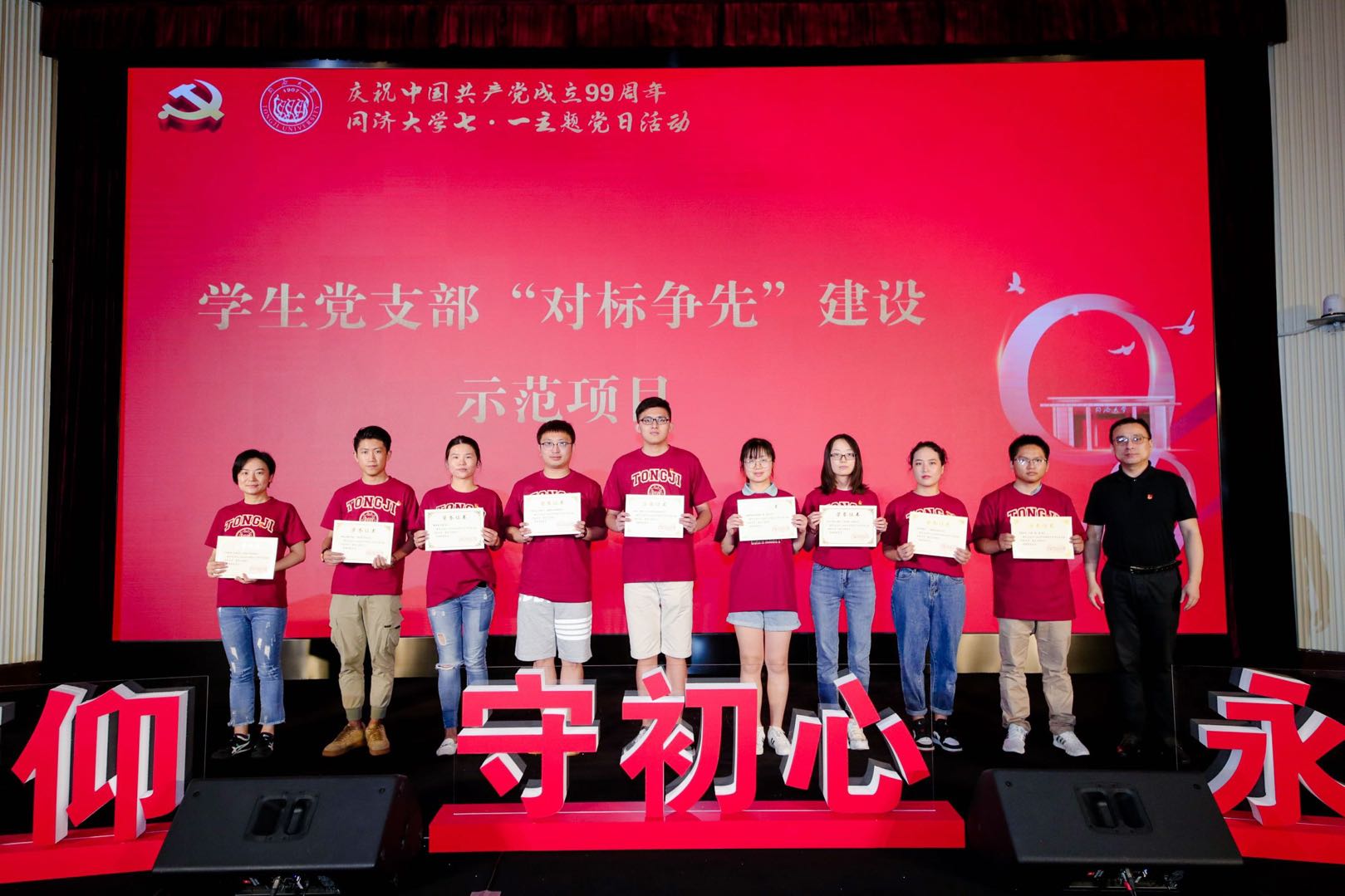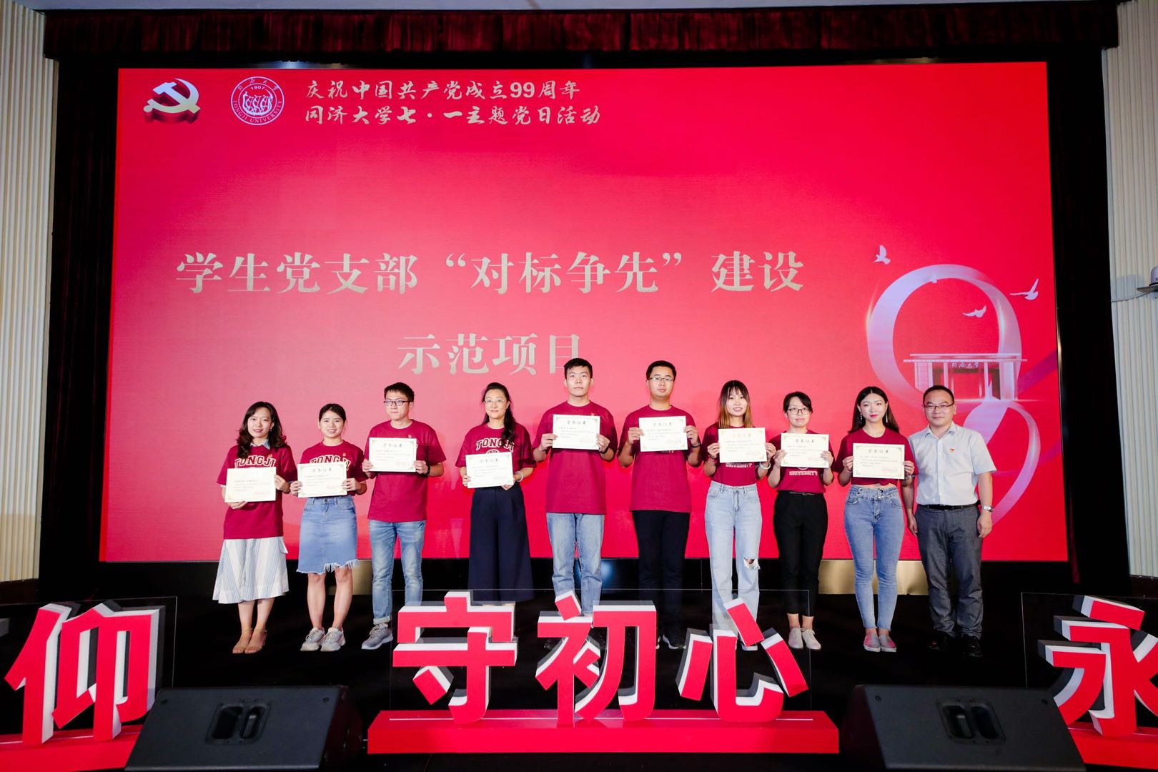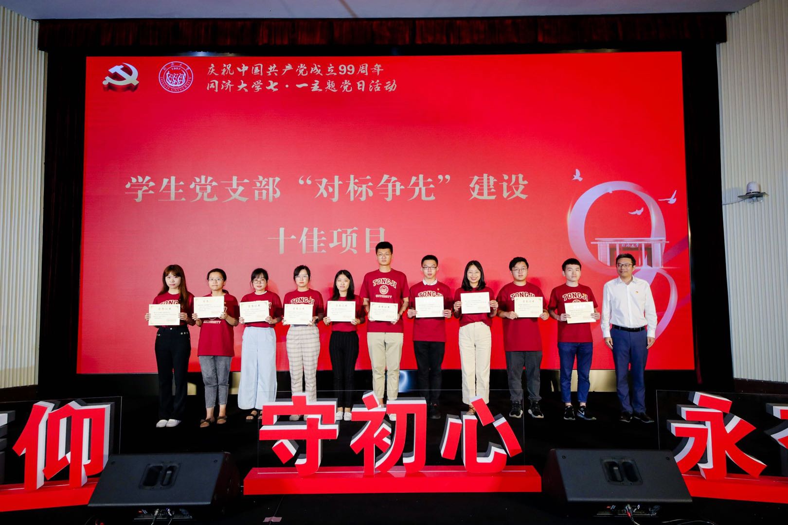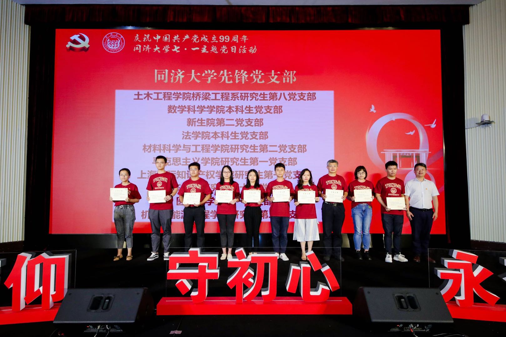 为庆祝中国共产党成立99周年,7月2日下午,由校党委学生工作部、研究生工作部主办,外国语学院、测绘与地理信息学院承办的同济大学七·一主题党日活动暨“献礼建党百年 党员百+行动”启动仪式在逸夫楼一楼报告厅举行。校党委副书记徐建平出席活动并讲话,党委组织部、学研工部、团委、外国语学院、测绘与地理信息学院相关负责人,各学院分管学生工作党委副书记、辅导员和学生党支部书记、学生党员代表到现场参会,其他学生党员通过同济大学流媒体平台线上参会。