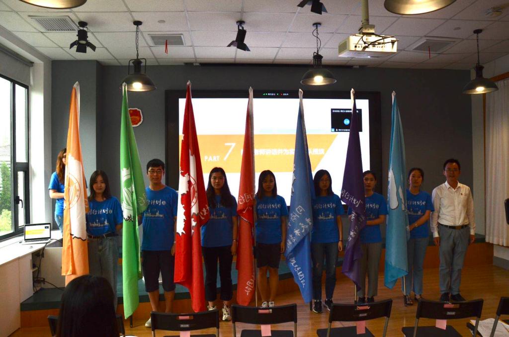 校团委书记陈城老师在培训会的最后进行了总结和寄语。陈老师强调一是要珍惜,多做事,主动担当。二是要实干,能吃苦,踏实工作。三是勤学习,明思路,提高政治站位。陈城为即将前往各地区实践的团队授予队旗。