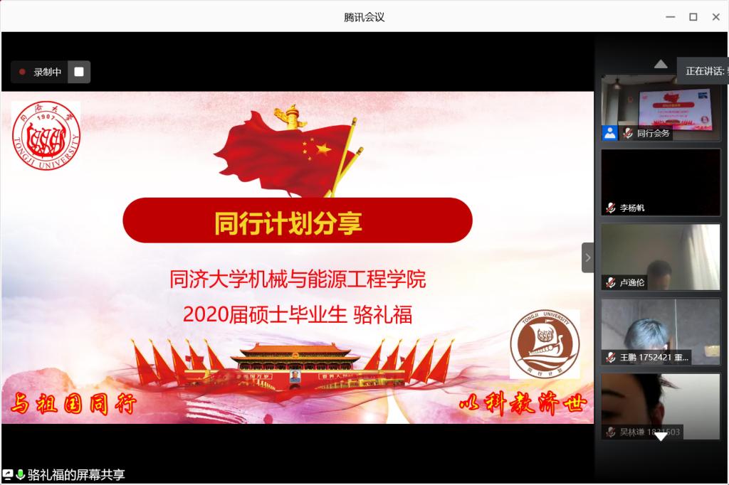 2019同行学生代表骆礼福结合自己的学习、成长经历为大家分享了他为什么报考选调生以及参加“同行计划”的收获。他提到在实践中结识到多位回广西玉林发展的选调生校友,感受到同济青年有志为家乡谋发展的满腔热血,也更加坚定了走选调生道路的决心和信心。