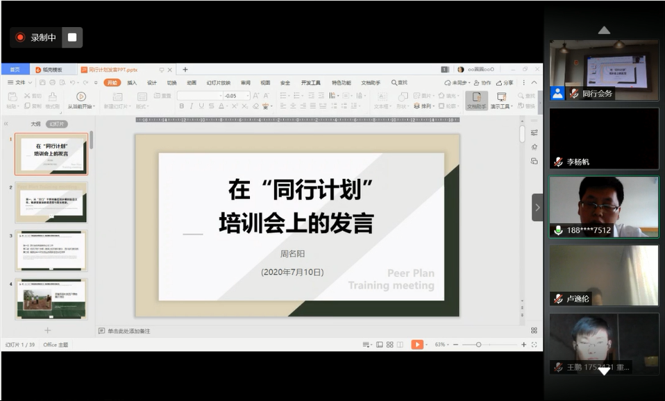 “同行计划”指导老师葛畅对2020年“同行计划”的报名遴选情况、主要变化情况以及相关管理制度进行了介绍,从安全制度、主题活动、宣传制度、考评机制、成果提交、财务制度等方面进行了全方位的解读,尤其要求同学们坚决落实疫情防控规定,确保个人安全和实践锻炼的顺利进行。