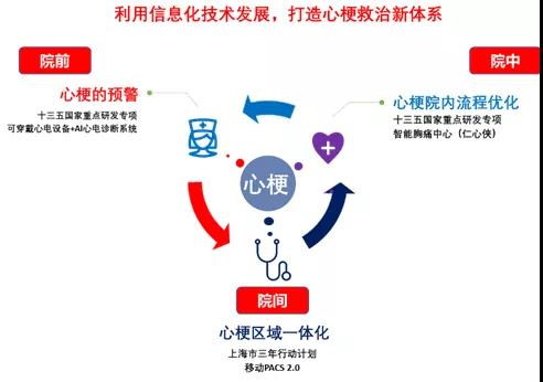 徐亚伟教授团队深耕信息化心梗救治领域10余年,旨在通过信息化手段解决我国心梗患者的救治延迟问题。附属十院心脏中心多年来联合多家知名高科技公司,共同建立了一套集合可穿戴设备、人工智能软件和物联网技术的人工智能心肌梗死信息化救治系统。该系统的目标是在院前、院中及院间通过信息化体系优化急性心肌梗死的整个救治链,从而缩短患者的呼救时间、抢救时间,缩短患者的住院时间,并提高心功能恢复水平,最终降低患者的死亡率。目前,该团队已在此领域实现一定的突破:在院前,将通过可穿戴设备+人工智能心电诊断系统实现心梗的自动预警;在院中,让患者佩戴胸痛手环实现先救治后收费,90分钟黄金抢救时间全程记录;在院间,建立区域一体化信息化救治体系,降低区域内救治水平不平衡。