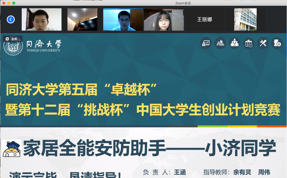 同济大学第五届“卓越杯”暨第十二届“挑战杯”中国大学生创业计划竞赛校内选拔赛决赛近日举行。本届赛事全程使用统一钉钉线上竞赛平台“上海市‘挑战杯’创业计划平台”开展。100件从初赛中获胜的优秀作品,通过线上答辩的方式参加校内选拔赛决赛。决赛评审专家组由历届挑战杯赛事资深评审、创业企业家和投资人、各领域知名专家学者等12位校内外专家组成,根据社会价值、实践过程、创新意义、发展前景和团队协作五方面综合评定,遴选20件获奖作品代表我校参加“挑战杯”创业赛市赛角逐。