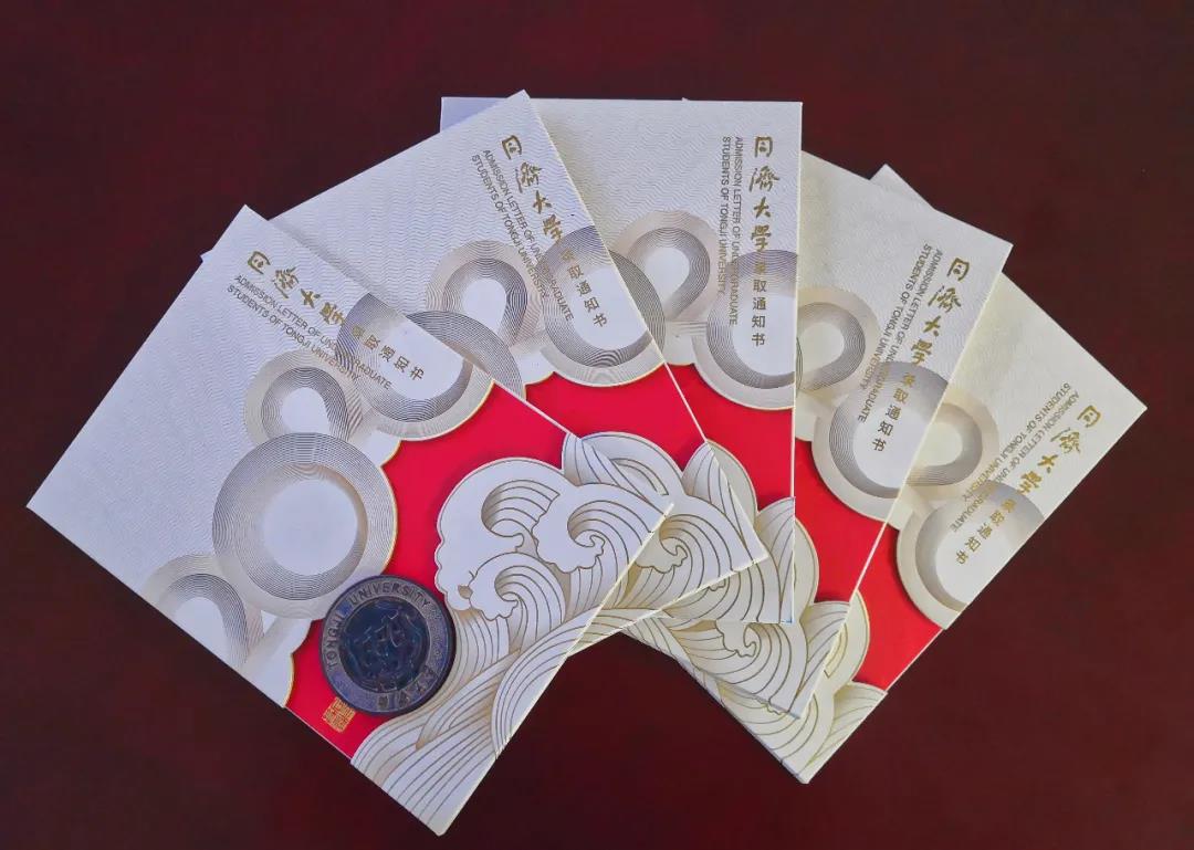 我校今年本科生录取通知书的设计主题是“乘风破浪”,整体设计庄重、意蕴隽永,希望给每位同济新学子留下一份珍贵且独特的美好记忆。通知书经过近60道传统与现代印装工艺,采用的原材料80%以上是再生或使用可再生资源制作的。