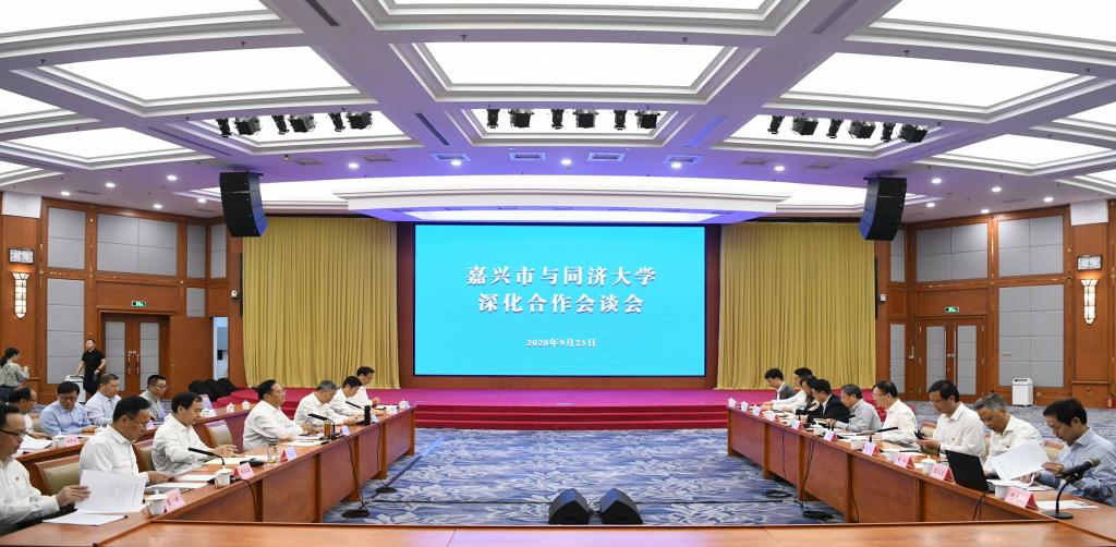 9月23日,嘉兴市与同济大学深化合作会谈会在嘉兴市政府举行。校党委书记方守恩、嘉兴市委书记张兵出席会议并讲话,校长陈杰、常务副校长伍江、同济大学浙江学院校长董琦,嘉兴市领导毛宏芳、马永良、祝亚伟、邢海华、敖考权出席会议。