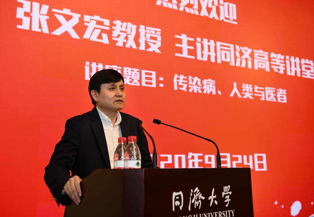 9月24日晚,我校四平路校区逸夫楼报告厅内响起一阵阵热烈掌声和欢笑声。同济大学秋季学期高等讲堂第一讲开讲,主讲者是上海抗新冠肺炎临床救治专家组组长、复旦大学上海医学院内科学系主任、复旦大学附属华山医院感染科主任张文宏教授。副校长、中科院院士陈义汉致欢迎辞。此次讲堂由医学院和研究生院共同主办。