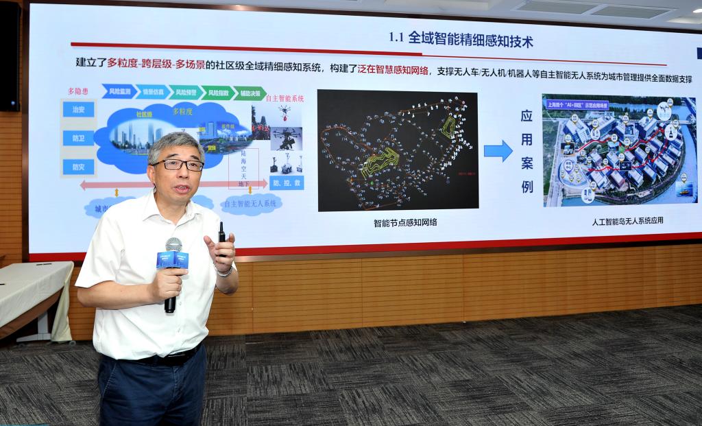 此次双方联合发布了七项人工智能研究成果,涉及自主智能无人系统全域精细感知技术、高实时一屏集控数字孪生管理系统、城市运行重大风险防范与应急管理体系框架等,为防疫、应急、设施运维等城市运行领域再添助力。今年4月以来,同济大学与上海市城运中心在政产学研用等领域全面合作,集合专业管理和科研人才优势,聚焦城市运行重点领域,配置资源促进技术、服务、数据等要素的有效衔接,在促进城市运行管理的全面感知、自主协同、自动识别等方面取得新突破。如此次发布的重大公共卫生事件智能防控技术,在多目标、高精度多机器人协同下,实现了可视化系统、自然语音交互、多模识别技术、高精定位导航和自主控制的技术融合,发明了疫情生理特征多维融合快速感知技术,研发了异构自主协同疫情检测机器人,构建了重大疫情防控大数据示踪与传播预警模型,并提出了方舱医院集成建造与城市应急处置方法,这些技术的实战实践将进一步提升城市的防疫能力和水平。上海市应急局副局长杨晓东和市卫健委副主任赵丹丹说,“我们将和研究人员一道探讨推动这些新发明、新技术的落地实践,用更多人工智能手段来提升城市的应急和防疫水平。”