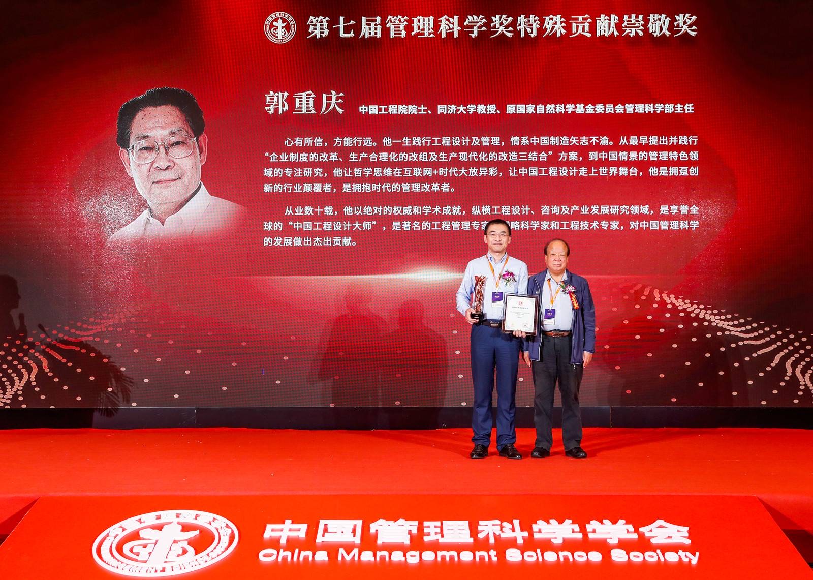 9月27日,2020中国管理科学大会暨第七届管理科学奖颁奖典礼在北京举行。会上,同济大学教授、中国工程院院士、国家自然科学基金委员会管理科学部原主任郭重庆荣获第七届管理科学奖特殊贡献崇敬奖。