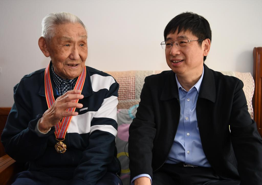 10月26日中午,校党委副书记吴广明来到我校离休干部、原图书馆直属党支部书记贾巨海家中,看望慰问这位91岁高龄的老同志,为他佩挂“中国人民志愿军抗美援朝出国作战70周年”纪念章。佩戴上这枚纪念章,老人回忆起了七十年前参加抗美援朝的亲身经历以及参与朝鲜战后重建工作的一些故事,激动之情溢于言表。他说,难忘昔日峥嵘岁月,今天的幸福生活来之不易。