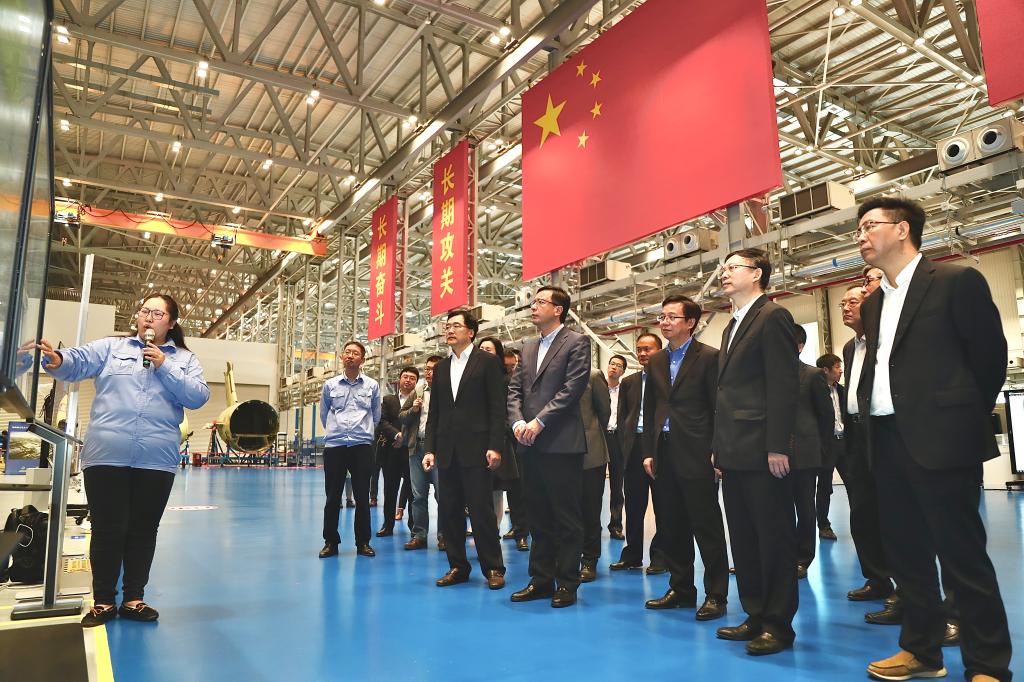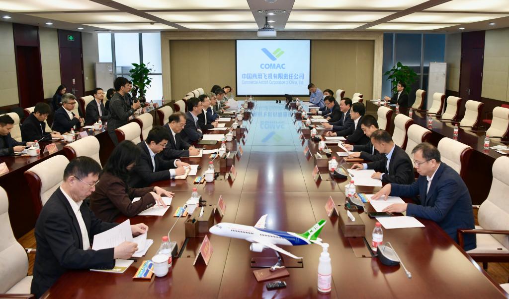 会前,方守恩一行参观了中国商飞公司5G全连接工厂及部装、总装车间等,观看了习近平总书记亲切关怀大飞机事业纪录片。
