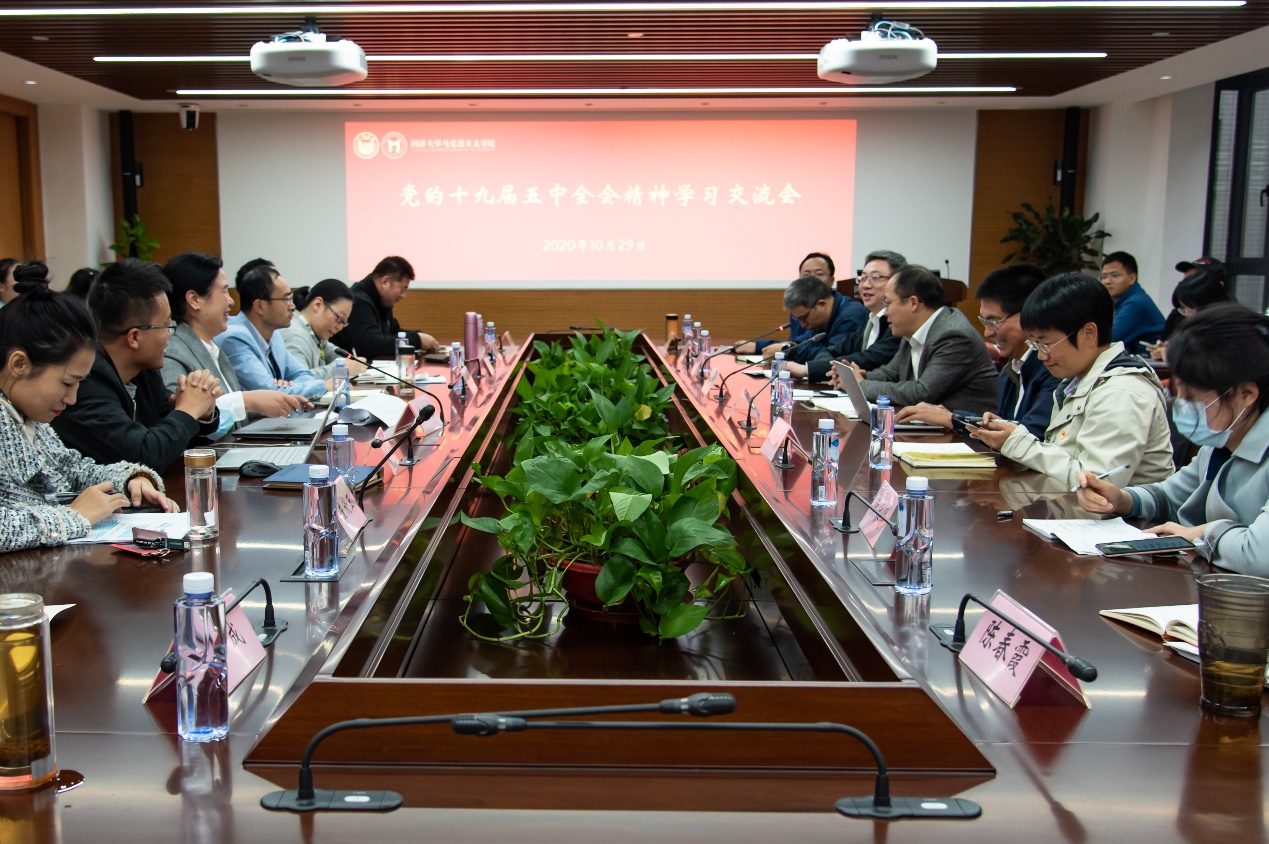 10月29日下午,我校马克思主义学院召开党的十九届五中全会精神学习交流会,旨在及时学习领会贯彻党的十九届五中全会精神,推进马克思主义理论学科建设、高校思想政治理论课建设,来自同济大学、华东理工大学、上海对外经贸大学的师生代表参会交流。与会的校内外专家表示,党的十九届五中全会对“十四五”规划和二〇三五年远景目标的擎画,对于在全球百年未有之大变局和中华民族伟大复兴的战略全局中,推进实现第二个百年奋斗目标具有重要的现实意义和深远的历史意义。高校马克思主义学院要以多种形式及时学、深入学、跟进学,做到学懂、弄通、悟透,努力把党的十九届五中全会精神贯彻落实到学院师生的教学科研之中,不断推进马克思主义学院建设、马克思主义理论学科建设、高校思想政治理论课建设,帮助青年学子立根铸魂,为培养担当民族复兴大任的时代新人贡献力量。