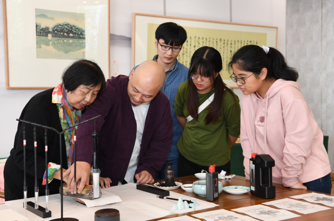 由国家级非物质文化遗产代表性项目代表性传承人、杭州十竹斋艺术馆馆长魏立中倾力打造的“匠心神韵——国家级非物质文化遗产木版水印艺术作品展” 在文榷堂揭幕,共展出了《廿四节气》《四美图》《一团和气图》等98件重要木版水印作品,以及120余件雕版和文献资料。展览同时发布了魏立中为我校定制的《同舟共济》《自强不息》《继往开来》3幅版画,以及《仰望星空》《学海泛舟》《开卷有益》《继往开来》《礼堂济忆》《同嘉石刻》6张藏书票。