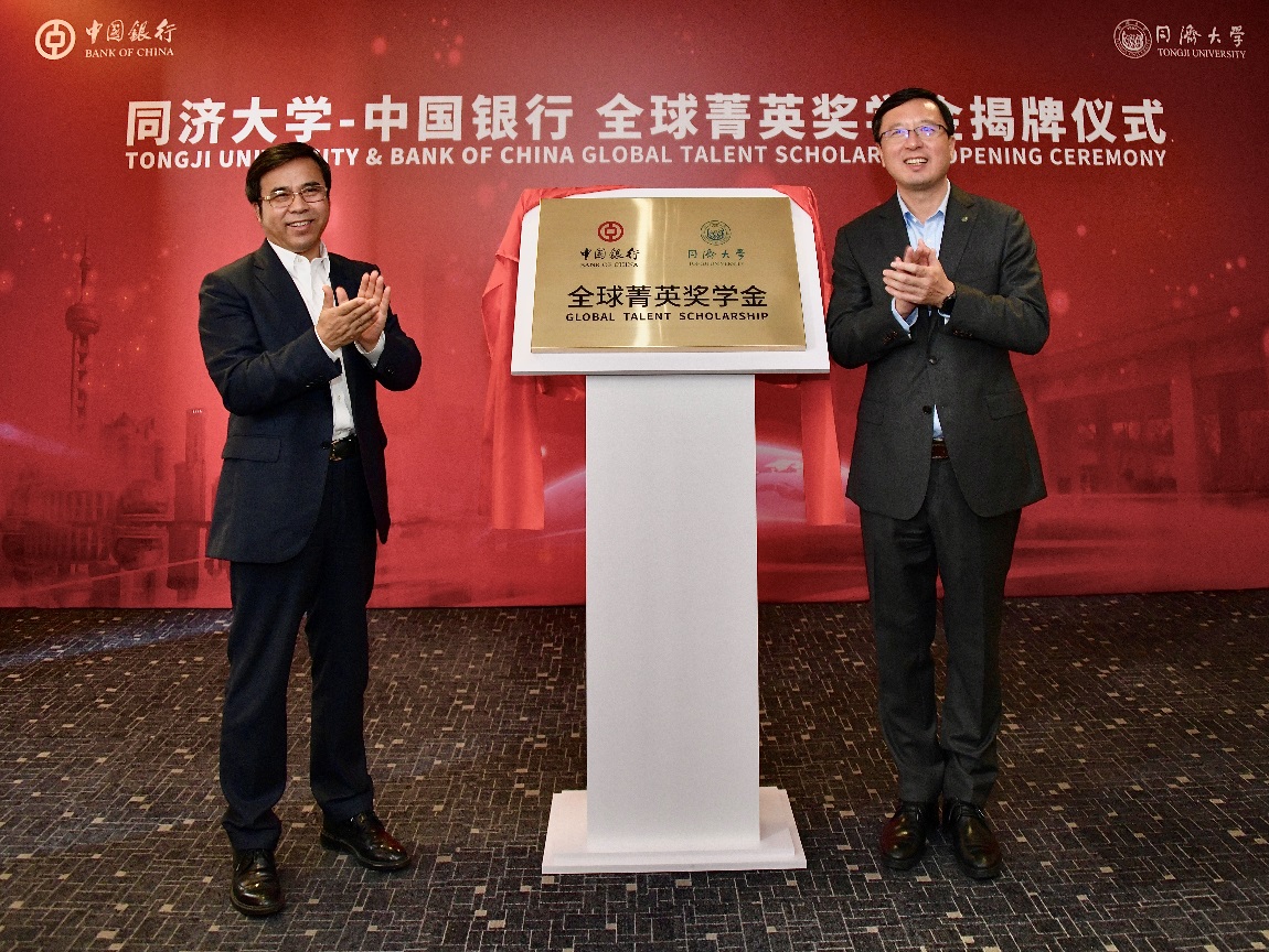 同济大学和中国银行在前期签署全面战略合作协议基础上,为进一步加强银校实质性合作,双方共同冠名的“同济大学-中国银行全球菁英奖学金”揭牌仪式日前在上海中国银行大厦举行。