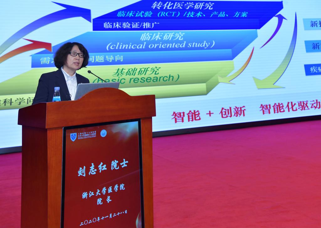 论坛上,刘志红院士作了题为《人工智能在肾脏病领域的应用》的主旨报告,她结合自身工作,讲述了如何将人工智能应用于肾脏病预测、预后分析、患者分群、辅助诊断、指导治疗及基因组学等。施剑林院士作了题为《面向肿瘤治疗的纳米催化医学》的主旨报告,讲述了纳米催化医学的概念,纳米靶向治疗如何通过对肿瘤内部环境催化的改变,最终为肿瘤治疗提供新型方案。