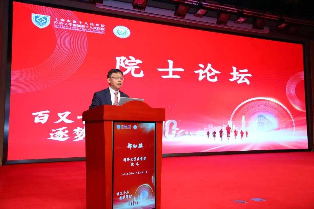 随后,院士论坛开讲。陈杰表示,在同济大学113年的办学历程中,发展和振兴医学始终是同济人的梦想,一代代同济人始终薪火相传,有着对国家卫生事业发展的忠诚。今年,学校对标世界一流医学学科的发展,将医学院整体搬迁到沪西校区,攻关基础研究和应用基础研究,推进基础研究在临床的转化应用,全力支持附属医院建设成为与“双一流”相适应的研究型医院。此次院士论坛有幸邀请到刘志红院士、施剑林院士作精彩报告,相信他们的报告将给大家带来医学前沿的盛宴。祝愿十院在历史交汇点上披荆斩棘,再创辉煌。
