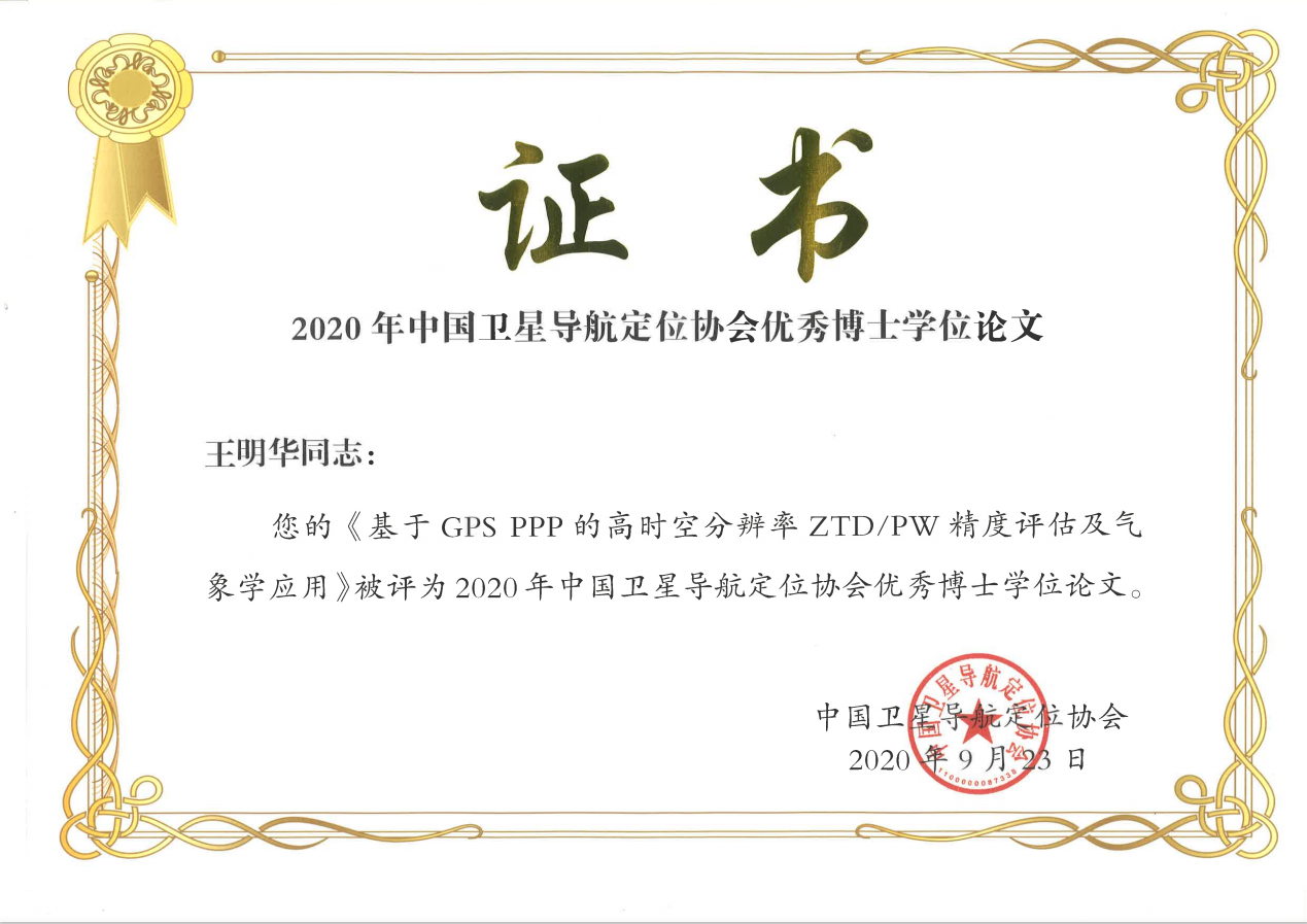 日前,我校测绘与地理信息学院2013级博士生王明华的博士学位论文《基于GPS PPP的高时空分辨率ZTD/PW精度评估及气象学应用》被评为2020年中国卫星导航定位协会优秀博士学位论文,导师为王解先教授。