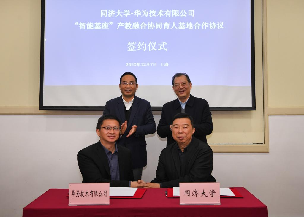 12月7日,同济大学-华为技术有限公司“智能基座”产教融合协同育人基地合作协议签约仪式在我校举行。华为技术有限公司副总裁、华为云计算技术有限公司董事长郑叶来,副校长雷星晖,及我校本科生院、电子与信息工程学院、软件学院等相关单位负责人和教师代表出席仪式。本科生院院长黄一如和华为上海研究所所长董庆阳代表双方签署了协议。