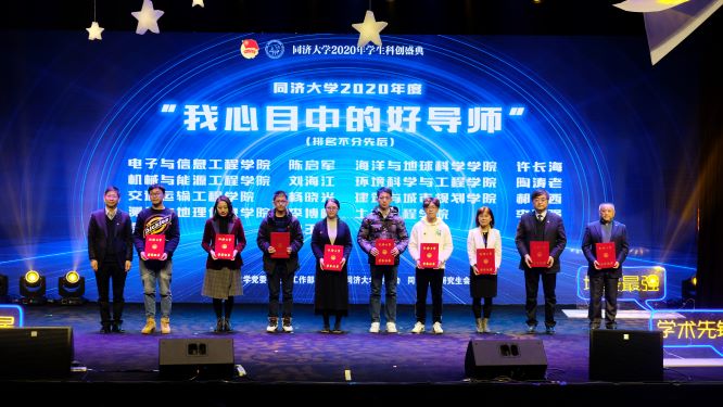 12月8日,同济大学2020年度学生科创盛典在嘉定校区举行。本年度我校共有9位教师获评“我心目中的好导师”,10名本科生获评“学术之星”,10名研究生获评“学术先锋”。校长助理彭震伟及校科协、校团委、科研管理部相关负责人等出席典礼,并为获奖者颁奖。