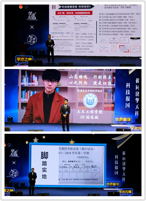 自今年10月起,怀揣科技报国远大理想的70多个“学霸”经过自主报名、学院评选、学校复评、学校终评层层筛选,最终,来自10个学院的13名本科生进入复评,参加了盛典现场答辩。此次评选仅复评候选人就累计获得10余项专利,在顶级杂志上发表论文27余篇,在“挑战杯”等海内外大赛上共斩获120余奖项,7个候选人长年保持专业第一。终审现场,候选者们分享了科研路上的酸甜苦辣、学术之路的挫折与成功。有的学生还报名参与了服务西部计划,将于毕业后踏上支援新疆建设的征程。