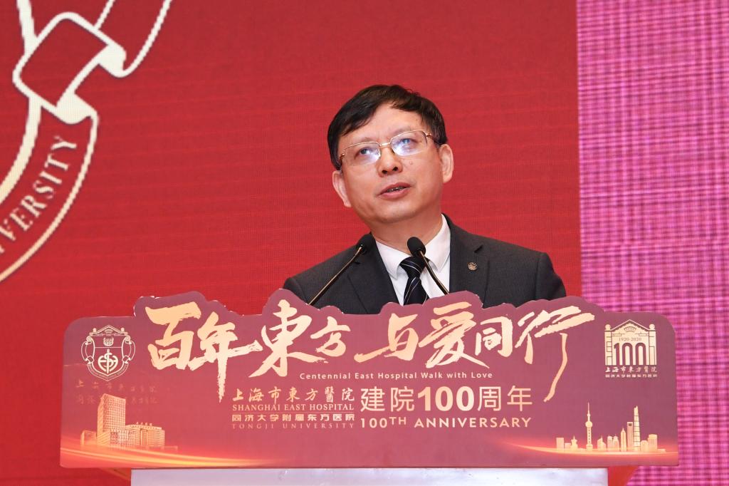 方守恩代表学校对附属东方医院百年华诞表示热烈祝贺,向长期以来关心、支持附属东方医院和同济大学医学发展的各位领导和社会各界表示衷心的感谢。他表示,东方医院传承百年的办医历史,抓住浦东开发开放的时代机遇,走出了一条蔚为壮观的中国特色、世界一流现代医院的建设之路。面向第二个百年,同济大学将一如既往加强对附属东方医院的支持,与医院携手共进,贯彻落实总书记考察上海、考察浦东的重要讲话精神,为同济医学学科发展,为浦东和上海医疗健康事业,为强化国家战略科技力量,为健康中国建设作出新的更大的贡献。