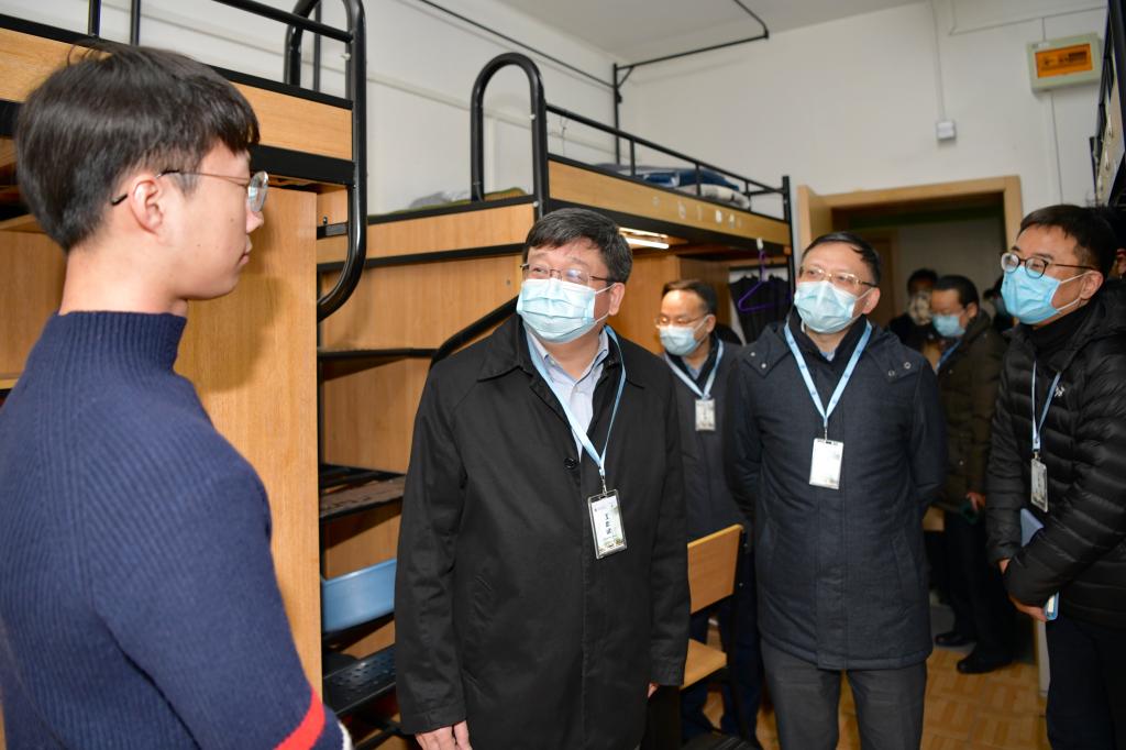 上午9时30分许,陈群一行首先来到西北三楼学生社区,看望慰问寒假留校学生,参观了解学校为留校学生寒假生活所作的相关安排。紧接着,陈群一行来到学苑饮食广场,参观了解学校为留校学生餐饮所作的相关安排。