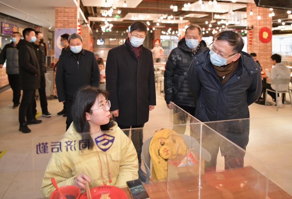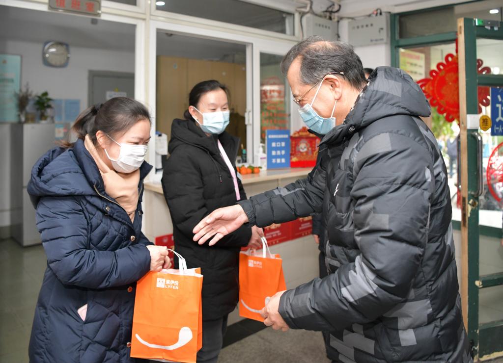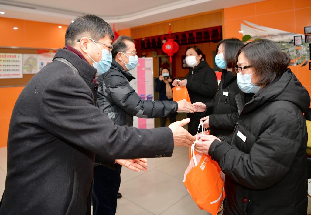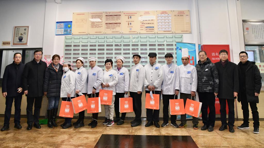 “新年好!给大家拜年了!”2月12日上午,方守恩一行先后来到四平路校区正门口、干训楼、西南九楼学生社区、西苑饮食广场、赤峰路200号门口,向在岗的保卫人员、服务员、宿舍管理人员、厨师表示亲切慰问,向他们送上新年大礼包,感谢他们放弃休息、辛勤值守,希望他们继续坚守岗位,为寒假春节期间留在学校的3千余名学生做好各项服务保障工作。在西苑饮食广场,方守恩还与在此免费就餐的留校学子亲切交谈,关切地询问他们留校的学习生活情况。