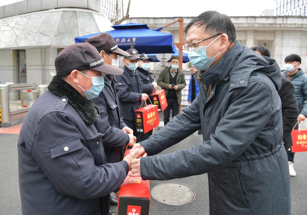 大年初一(2月12日)和除夕(2月11日),校党委书记方守恩、校长陈杰分别来到学校门岗、食堂、学生社区、校医院等处,亲切慰问了春节期间仍坚守岗位、奋战在一线的工作人员,向他们拜年,送上新年大礼包,感谢他们的辛勤付出,向他们致以节日的问候和新春的祝福。副校长雷星晖、校党委副书记彭震伟,以及党委办公室、校长办公室、宣传部、保卫处、后勤集团等部门负责人参加慰问活动。
