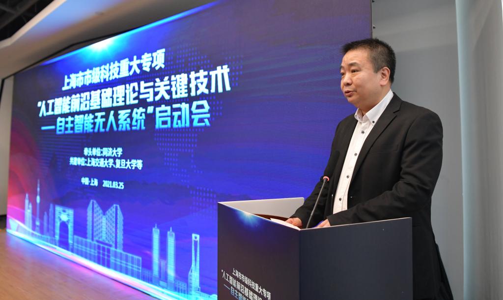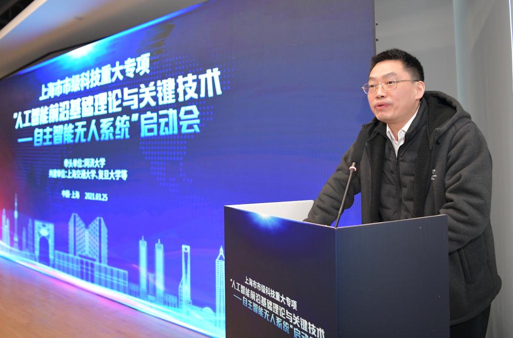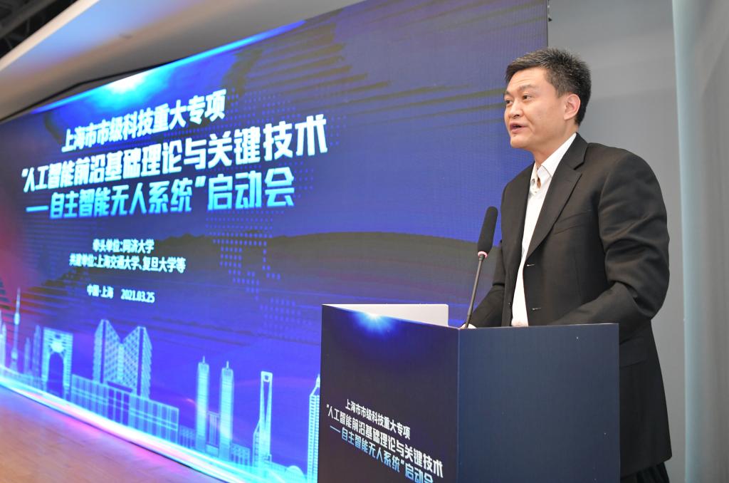 裘文进在致辞中表示,为加快打造具有国际竞争力的人工智能创新发展高地,形成了同济大学牵头,上海交通大学、复旦大学共同推进的实施方案。三所高校瞄准人工智能科学前沿,聚焦自主智能无人系统,充分发挥各自基础优势和自身特长,相信通过这一科技重大专项的实施,上海将在人工智能基础理论、人才队伍和关键技术等方面取得重大突破。