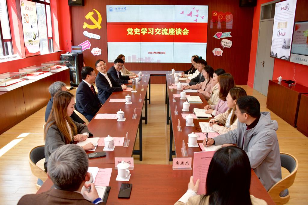 报告会结束后,冯俊还来到一•二九大楼同济大学爱国学生运动纪念馆,与思政课教师代表、马克思主义学院研究生党员代表、“理论+”宣讲团成员进行座谈交流,围绕如何讲好党史、如何面向不同受众群体讲党史等给予指导。方守恩出席座谈交流会。