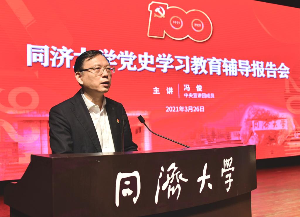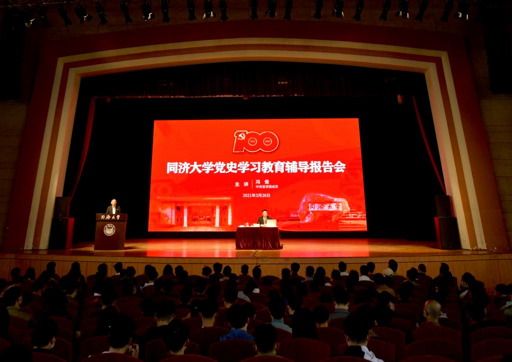 作为同济大学党史学习教育的重要活动之一,3月26日上午,学校举行党史学习教育辅导报告会,邀请党史学习教育中央宣讲团成员、原中共中央党史研究室副主任、中国中共党史学会原常务副会长、中共中央党史和文献研究院原院务委员、同济大学特聘教授冯俊作辅导报告。这也是学校干部年度培训的重要内容。校党委书记方守恩主持报告会。校领导班子成员、校党委委员、纪委委员、各民主党派负责人、机关干部、各单位领导班子成员、党支部书记、教师和学生代表共3000余人聆听了辅导报告。学校还在嘉定校区设立了分会场,并通过学校各大平台对报告会进行了直播。
