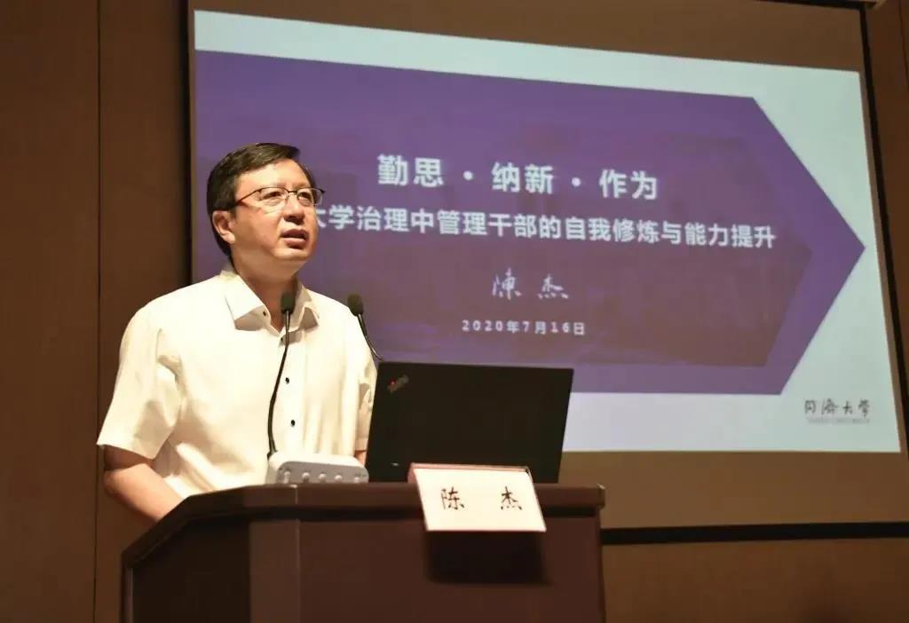 校长陈杰在开班辅导报告中,要求中层干部要坚持“脑中有事、眼中有活,心中有数、手中有招”的工作要求,努力建成与世界一流大学相适应的一流管理队伍;要勇于担当,做到“四个转变”,即管理向服务转变、被动向主动转变、粗放向精细转变、办事向谋事转变。