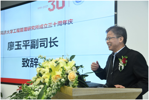 廖玉平在致辞中感谢丁士昭教授带领的同济大学工程管理研究所在建筑业管理机制理论与实践研究中所积累的大量成果,这些成果为我国建筑业发展政策的制定提供了重要的支持。