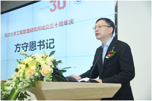 方守恩向工程管理研究所成立三十周年表示祝贺。他说,成立30年来,研究所在丁士昭教授带领下,在工程管理教育教学、学术研究、咨询实践与国际交流四个方面作出了巨大贡献,在国际和国内产生了重大影响。祝愿工程管理研究所能够沿着丁士昭教授开创的道路不断发展、壮大,不断创新、超越,继续为中国的工程管理理论和实践创新作出贡献,继续引领行业进步,继续为中国的工程管理事业培养出更多的杰出人才,在科学前沿和工程实践中获得更多成果,在国内外产生更大影响。