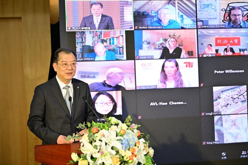 德国驻上海总领事馆领事、科技处处长、经济处副处长孔瑞超(Richard Cuntz),德国学术交流中心(DAAD)秘书长凯·西克斯(Kai Sicks),德国布伦瑞克工业大学校长卡提亚·科赫 (Katja Koch),同济大学校长陈杰、副校长雷星晖以线下或线上方式出席联合研发中心启动会,并分别致辞。