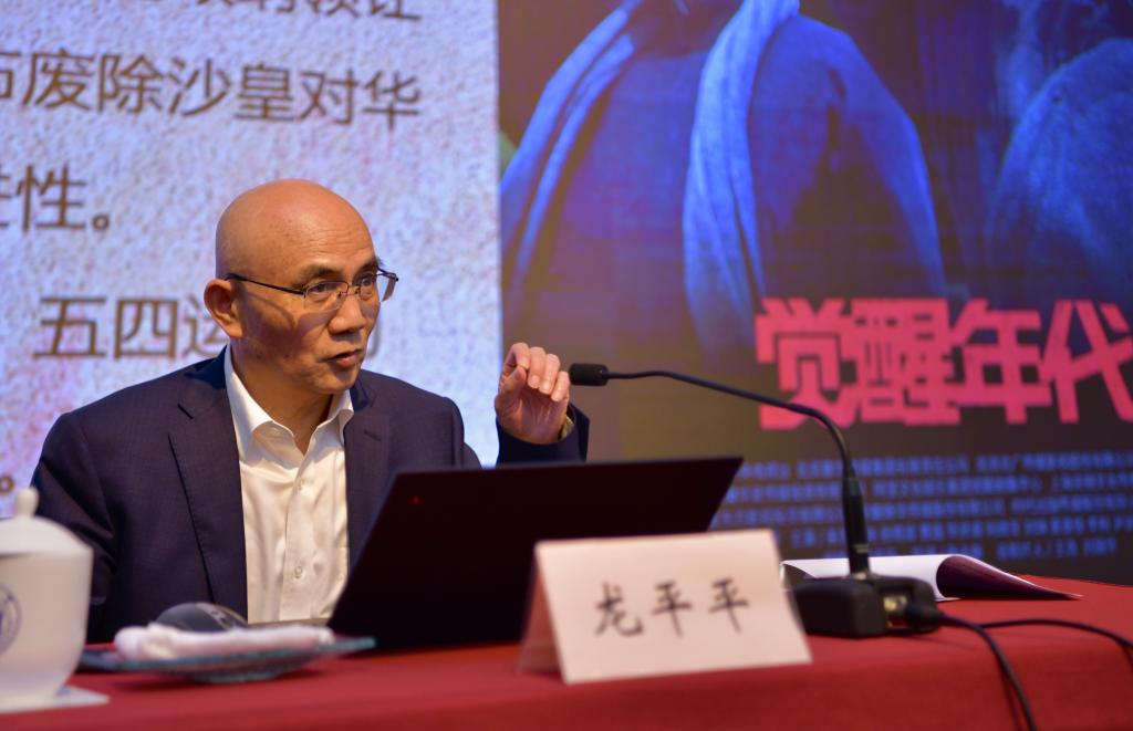 龙平平教授从“创作初衷”“思想溯源”“场地溯源”“人物溯源”4个方面,结合《觉醒年代》剧本创作,围绕该剧中重点讲述的1915年至1921年发生的新文化运动、五四运动和中国共产党建立三件大事,阐述了对“为什么要成立中国共产党”这一问题的思考。报告会中,还穿插播放了一些剧中的经典片段。