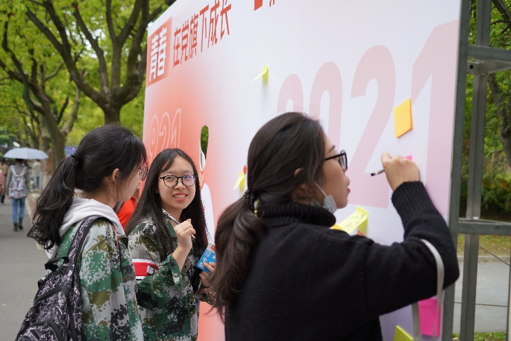 此次校园百米红色市集活动聚焦继承英烈精神、传承红色基因、传播时代声音主题实践,“摊主们”都是我校优秀社会实践团队和理论宣讲团的成员。活动中,这些“实践先锋”通过接地气的“摆摊”形式开展朋辈互动,引导学生积极参与到党史学习教育活动中来,深入学习了解“四史”,体悟青年担当,续写同济人以史为鉴、济世兴邦的华章。同济学子纷纷在留言墙上写下党旗下的成长宣言。