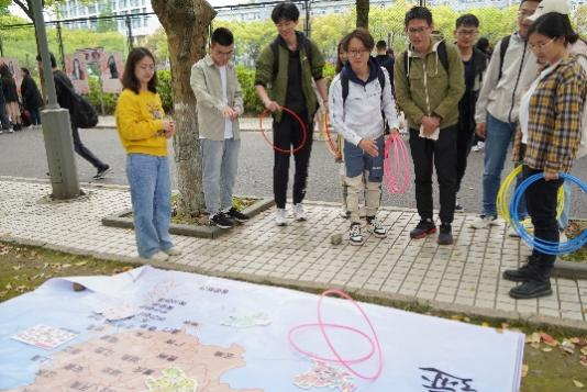 党史故事连连看、一“棋”学党史、红色地图版“大富翁”……4月20日中午,在我校四平路校区、嘉定校区,学生们搭起百米红色市集,摆开摊位,通过游戏互动,让党史学习“活”起来。