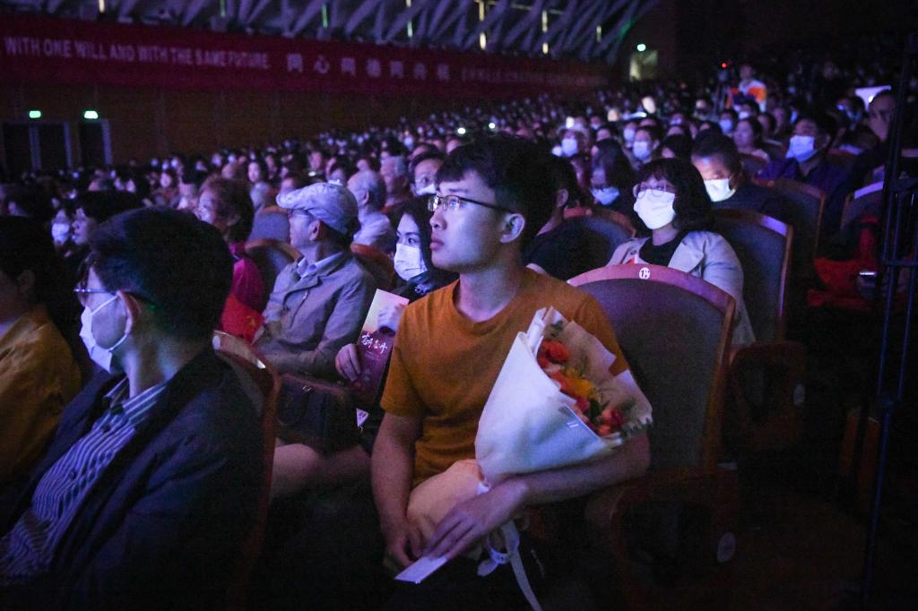 上海市人大常委会原主任陈铁迪、原副主任胡伟,上海市教卫工作党委副书记、市教委副主任闵辉,上海市原卢湾区副区长张载养,陕西省志丹县委副书记屈永峰,刘志丹干部学院副院长高睿,上海市委宣传部、市教卫工作党委、市教委有关部门负责人,同济大学党委书记方守恩、党委副书记吴广明等校领导,中层干部和师生代表共2200余人在现场观看了演出。来校观看演出的还有上海音乐家协会副主席郭强辉,著名男高音歌唱家、上海歌剧院原院长魏松,著名指挥家屠巴海,著名女高音歌唱家、上海音乐学院声乐歌剧系主任方琼,上海轻音乐团团长董德平。