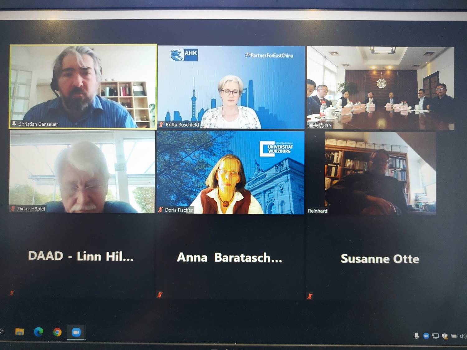 5月12日,同济大学中德工程学院和中德校园项目评估会在线举行,我校校长陈杰、副校长雷星晖出席会谈。此次会谈是德国联邦教育与研究部委托德国学术交流中心(DAAD)对其资助的同济大学中德工程学院及中德校园项目进行例行评估的重要组成部分。德方评估小组成员包括德国航空航天中心项目管理主任Christian Ganseuer(克里斯蒂安•甘泽尔)、德国工商大会上海职业培训部主任Britta Buschfeld(白丽塔)、维尔茨堡大学副校长Doris Fischer(费多丽)、汉堡应用科技大学教授Reinhard Völler(莱茵哈德•福乐)及卡尔斯鲁厄应用科技大学教授Dieter Höpfel(迪特•霍普菲尔)。德国学术交流中心、我校中德工程学院及外事办公室代表参加了会谈。