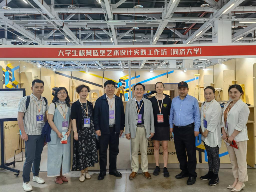 同济大学板凳造型艺术设计实践工作坊代表上海参加本届大艺展的工作坊展览。板凳设计工作坊不仅强调传统手工艺与当代数字加工技术的结合,还将绿色设计理念与造型美育相结合。教育部体育卫生与艺术教育司副司长万丽君、上海市艺教委主任陈克宏、上海市教委副主任倪闽景等现场参观工作坊。我校学生段闻笛在现场接受了四川新闻频道新闻现场栏目采访,详细介绍了“大学生板凳造型艺术设计实践工作坊”几款板凳的制作过程和创新创意,向观众传达了艺术源于生活、艺术融入生活的工作坊理念。